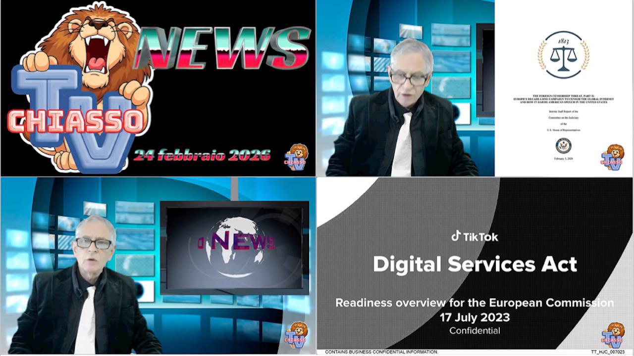 Chiasso TV News 24 febbraio 2026 - La Commissione Giustizia della Camera dei Rappresentanti sostiene che la Commissione Europea abbia influenzato le regole dei social media, incidendo sulla libertà di espressione negli Stati Uniti. Nel mirino anche la multa a X. Annunciata la prosecuzione dell’indagine sulle normative straniere.